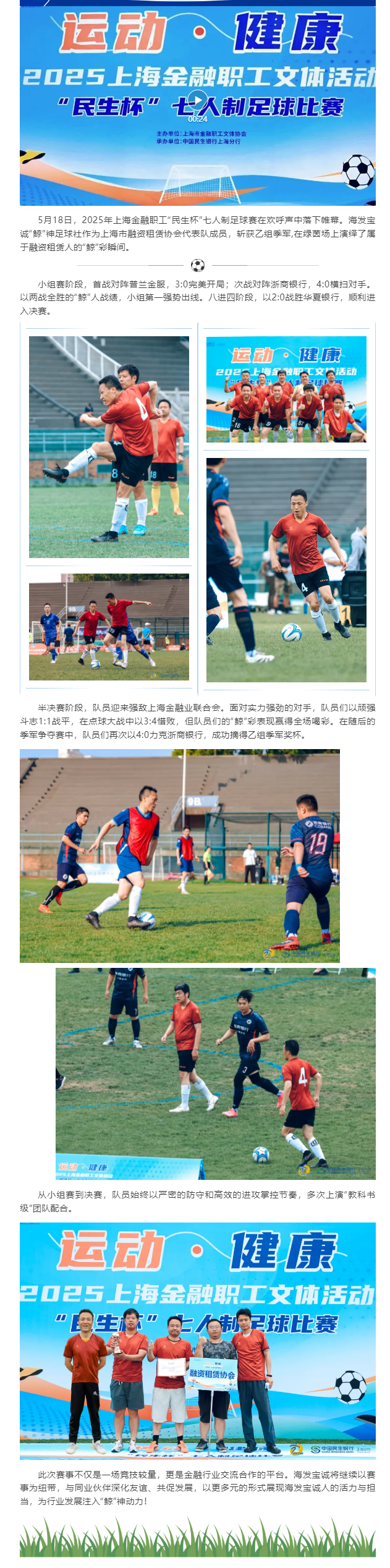 海发宝诚“鲸”神足球社代表上海市融资租赁协会出赛 获2025年上海金融职工“民生杯”七人制足球赛乙组季军