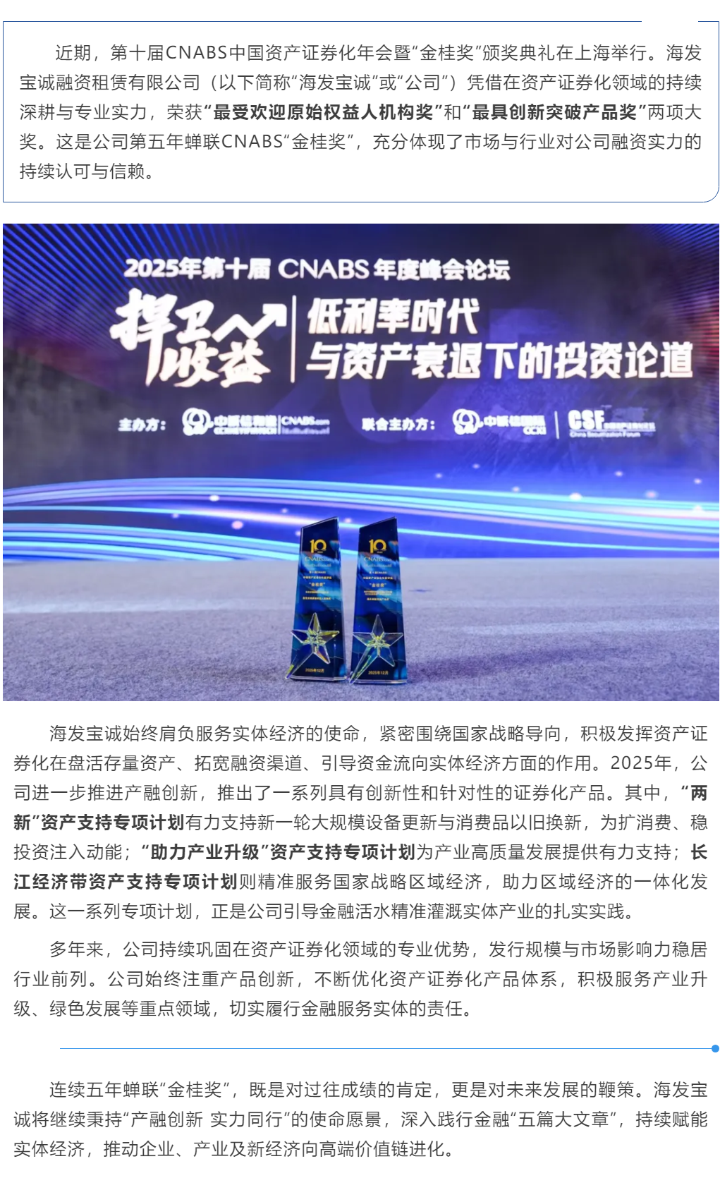 海发宝诚连续五年蝉联CNABS“金桂奖”双项大奖